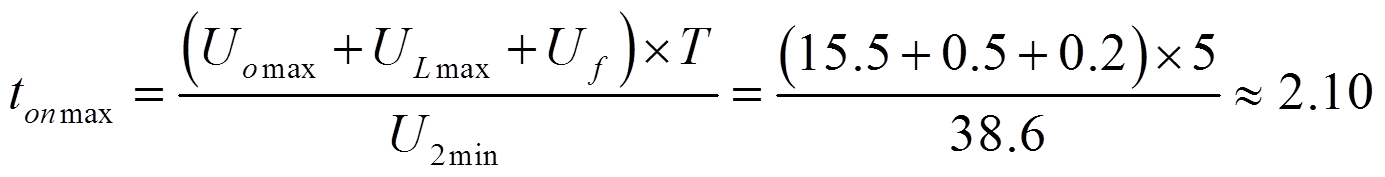 次級線圈所需要的電壓U2min一定要充分,因此要進行ton max的修正計算。