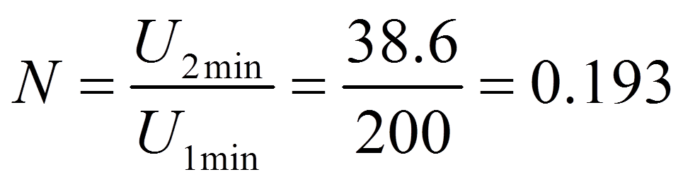 輸入直流電壓U1的最小值使用按輸出電路計算求得的U1min值。根據中國輸配電情況U1=200~253V,則變壓比N為
