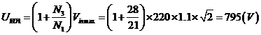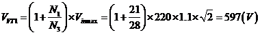 根據單端正激式變換器計開關管VT1承受最大電壓公式得: