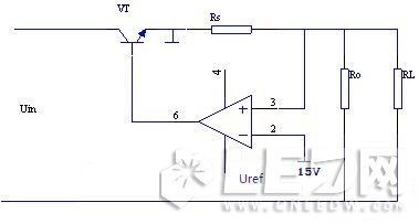下圖是恒流電源常用電路,其中采樣電阻RS串聯在功率回路里,作為回路電流的采樣元件。它把回路電流轉換成電壓信號,并與基準電壓Uref在放大器中進行比較放大,然后將其送至調整管VT的基極,驅動調整管VT對輸出電流IO變化進行補償校正。就可以實現恒流輸出的。