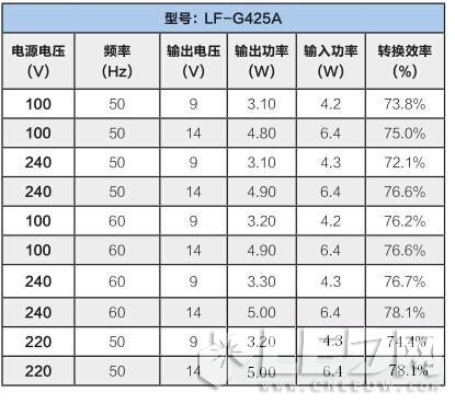 經過測試,5個型號的LED控制裝置中,型號為LF-G425A的轉換效率最高達到78.1%,最低時為72.1%,為5個型號中轉換效率最高的;型號為LQC100VA-40HNA的轉換效率最高只達到53.8%,最低時只為51.7%,為5個型號中轉換效率最低的一個。