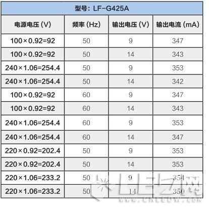 經過測試,5個型號的LED控制裝置中,KEDH003S0350NR05銘牌輸出參數為8-11VDC,實際輸出參數為6.3-14.3V;LF-G425A銘牌輸出參數為9-14VDC,實際輸出參數為6.3-15.4V;NQ2442C300銘牌輸出參數為6-12VDC,實際輸出參數為2.6-12.3V;LQC100VA-40HNA銘牌輸出參數為20-40VDC,實際輸出參數為15.8-57.6V;WGSBE-031C030銘牌輸出參數為10VDC,實際輸出參數為7.6-15V。經過比較,型號為LF-G425A、NQ2442C300的兩個輸出參數與銘牌輸出參數額定值偏差較小。