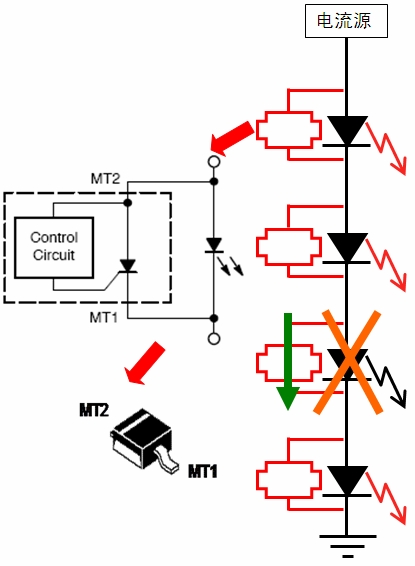 如前所述,區域照明應用中通常會采用多串LED。雖然LED本身的可靠性很高,但如果LED串中的某個LED凈化燈發生開路故障,那么整串LED就可能關閉,而街道照明等應用中就要避免這種狀況,從而降低后期維護成本。有鑒于此,安森美半導體推出了NUD4700LED電流旁路保護器(見圖3)。這器件是一款分流器件,萬一LED串中某個LED開路,則會提供電流旁路,確保在某個LED故障的條件下整串LED不會關閉;而且恰當處理散熱的話,還可支持大于1A的大電流。